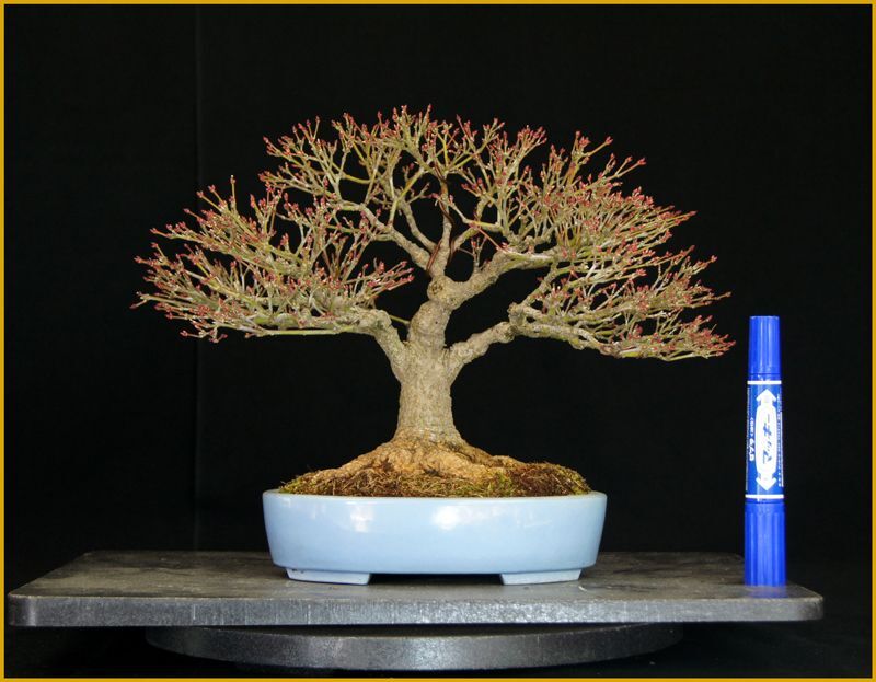 小品であるにも係わらず、紅葉特有の古い幹肌をしているのも鉢持ち込みが長い証で、風格があります。
