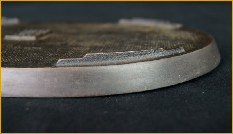 銅盤の高さが1.7cmにもかかわらず段足になっており、大きさのバランスと作りから気品を感じさせます。