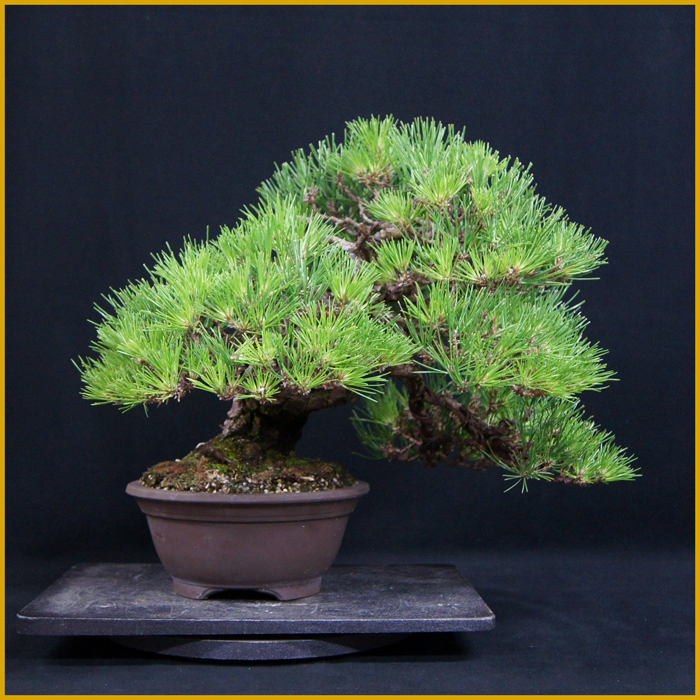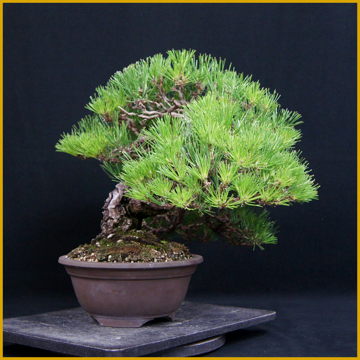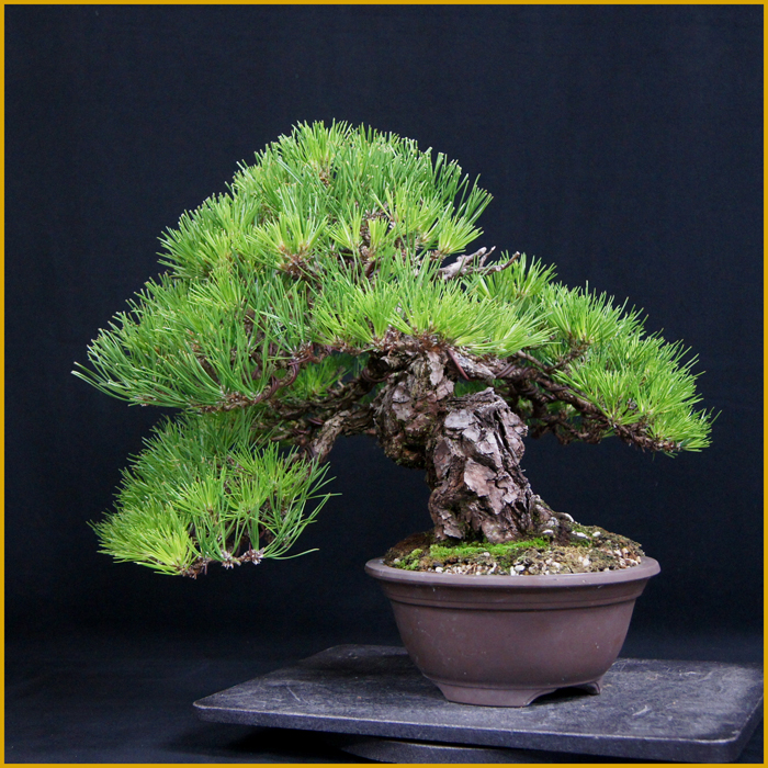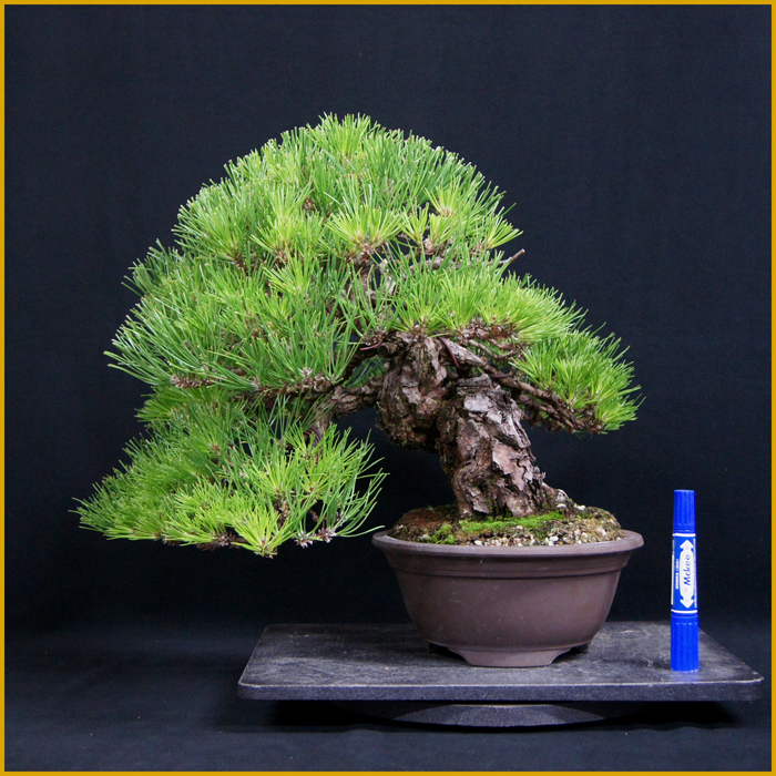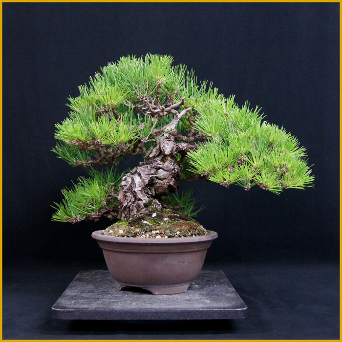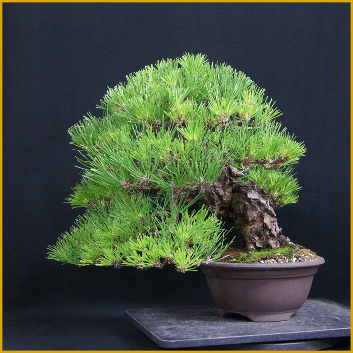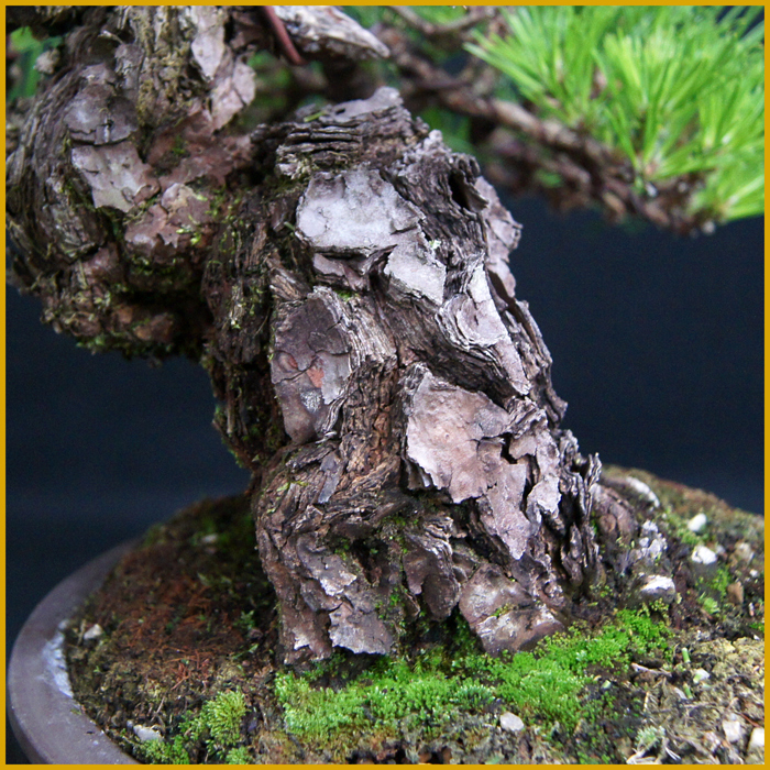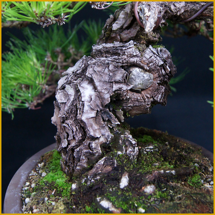 薄い樹皮が幾重にもなした古い幹肌が素晴らしい黒松です。