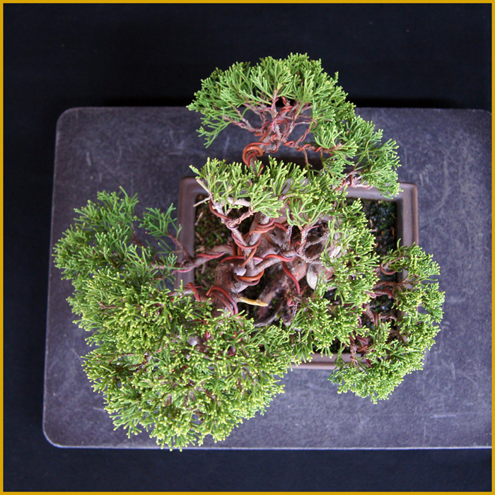 鉢合わせをして、葉が乗ると更に風格が増して良くなる真柏です。